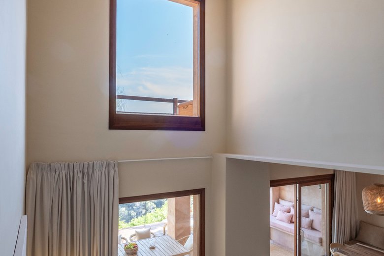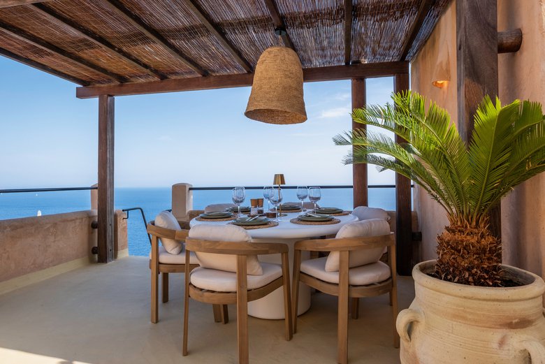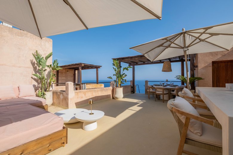 Sus amplias terrazas al aire libre invitan a disfrutar de momentos de calma, cenas relajadas y panorámicas únicas, mientras que los interiores, diseñados con elegancia y confort, crean un ambiente cálido y sofisticado. La experiencia se completa con una piscina infinity compartida que aporta un toque adicional de exclusividad.